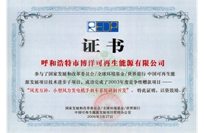 公司堅(jiān)持技術(shù)創(chuàng)新,獲得自主知識(shí)產(chǎn)權(quán)、專利近百項(xiàng):承擔(dān)了國(guó)家發(fā)改委、科技部、世界銀行、丹麥B2B等多項(xiàng)重要項(xiàng)目;參與起草制定國(guó)家多項(xiàng)標(biāo)準(zhǔn),并主編內(nèi)蒙古自治區(qū)小型風(fēng)力發(fā)電機(jī)組技術(shù)要求地方標(biāo)準(zhǔn):2018年“呼和浩特市博洋風(fēng)力發(fā)電機(jī)及控制系統(tǒng)研發(fā)中心”被自治區(qū)科技廳認(rèn)定為內(nèi)蒙古自治區(qū)企業(yè)研發(fā)中心。