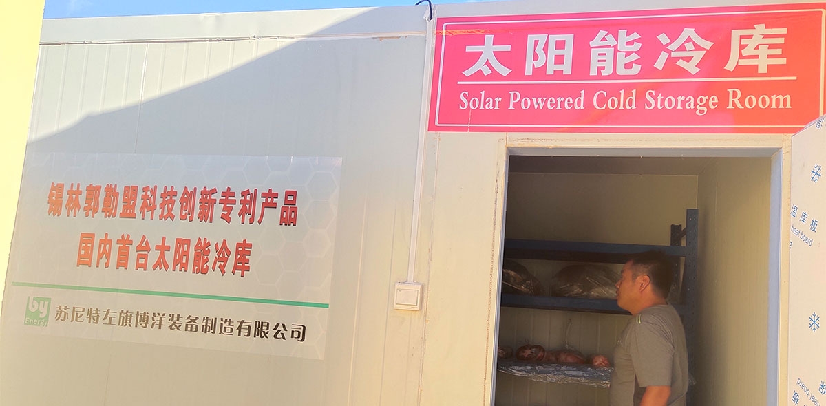牧民家庭傳統(tǒng)的冷凍儲藏設備為冰箱或者冰柜,但受限于本身容量較小,對一些儲藏量需求較大的牧民家庭并不能滿足其需求。我公司開發(fā)的太陽能冷庫因具有儲藏容量大、節(jié)能環(huán)保、可方便移動的特點,可在無電牧區(qū)方便使用。該太陽能冷庫容積為16m3,通常儲藏溫度設置在-18℃時壓縮機停止工作以節(jié)省電量,當內(nèi)部溫度上升到-14℃,壓縮機開始制冷。該太陽能冷庫日耗電約8度,冷庫采用直流壓縮機使其更加節(jié)能環(huán)保。